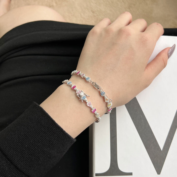 New Trending S925 Sterling Silver/Rhodium One Piece Jewelry Bracelet Chain For Women Luxury Zircon
