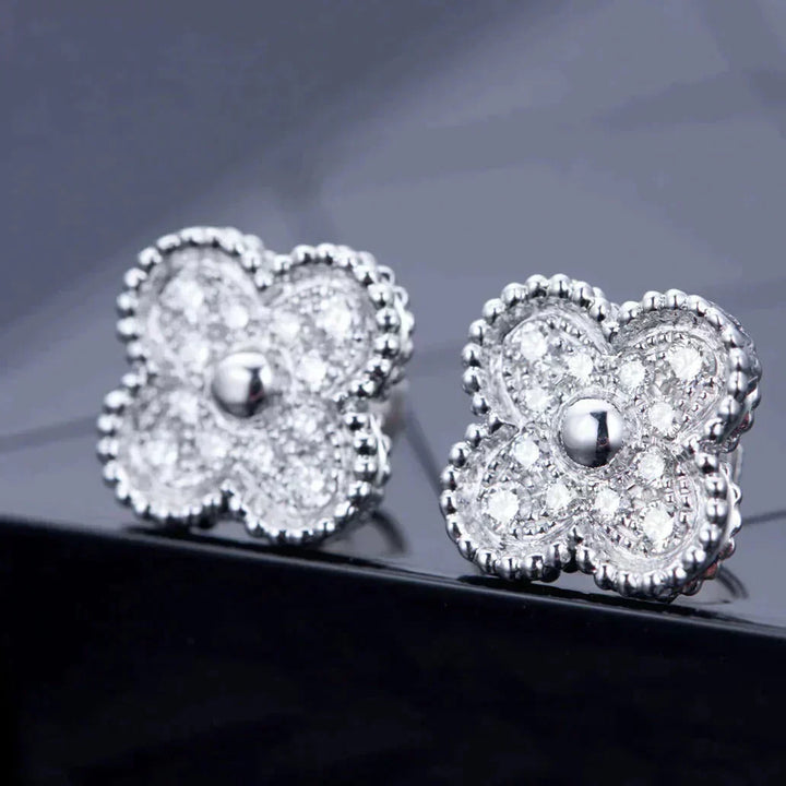 CLOVER 1 MOTIFS DIAMOND STUD EARRINGS SILVER